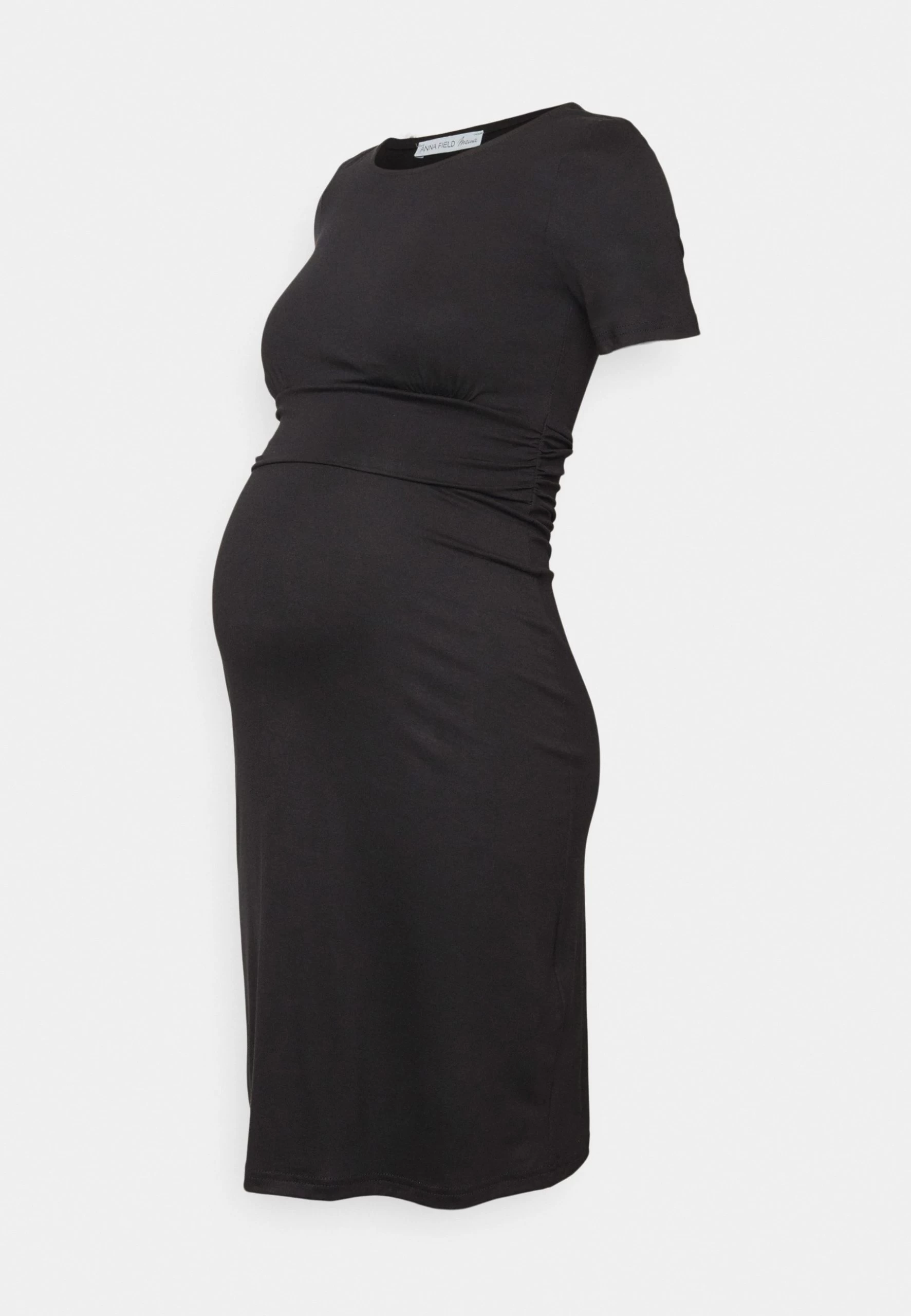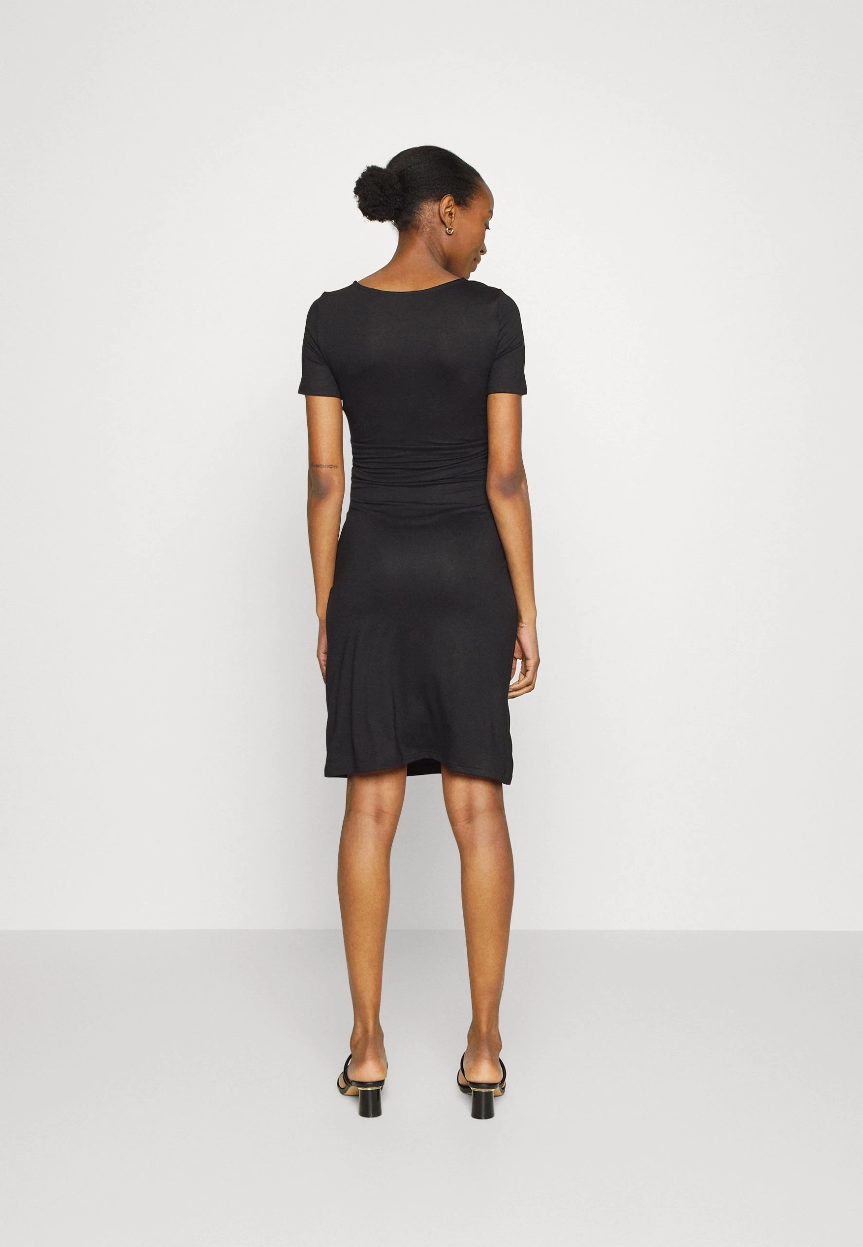 Short Sleeves Ruched Waist Mini Flared Dress – Jersey Dress – Black